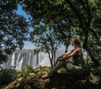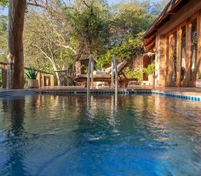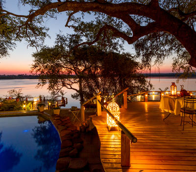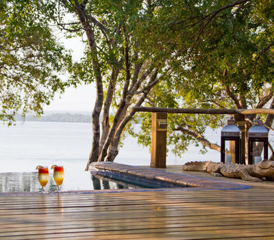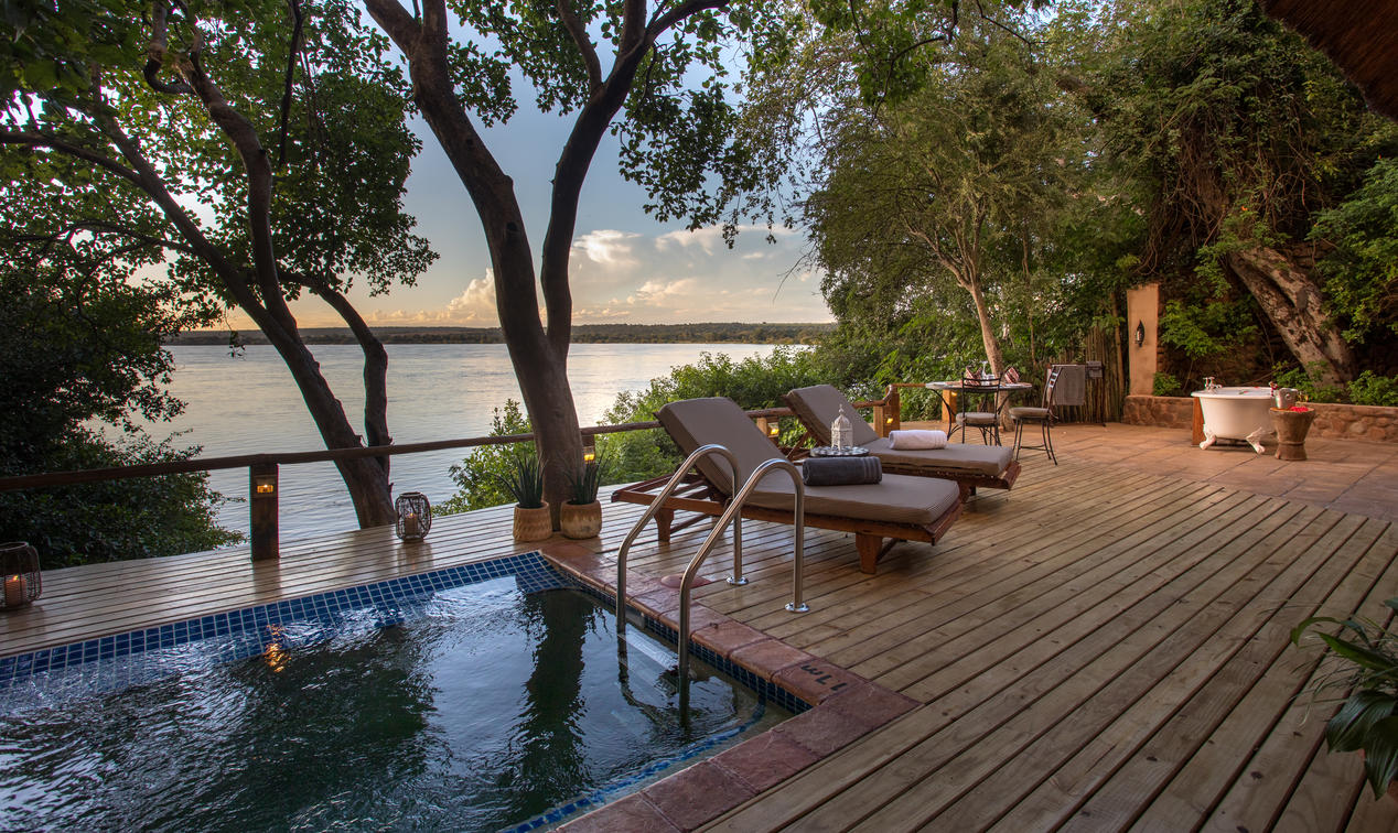 A private plunge pool at the edge of the Zambezi (with friendly crocodile)