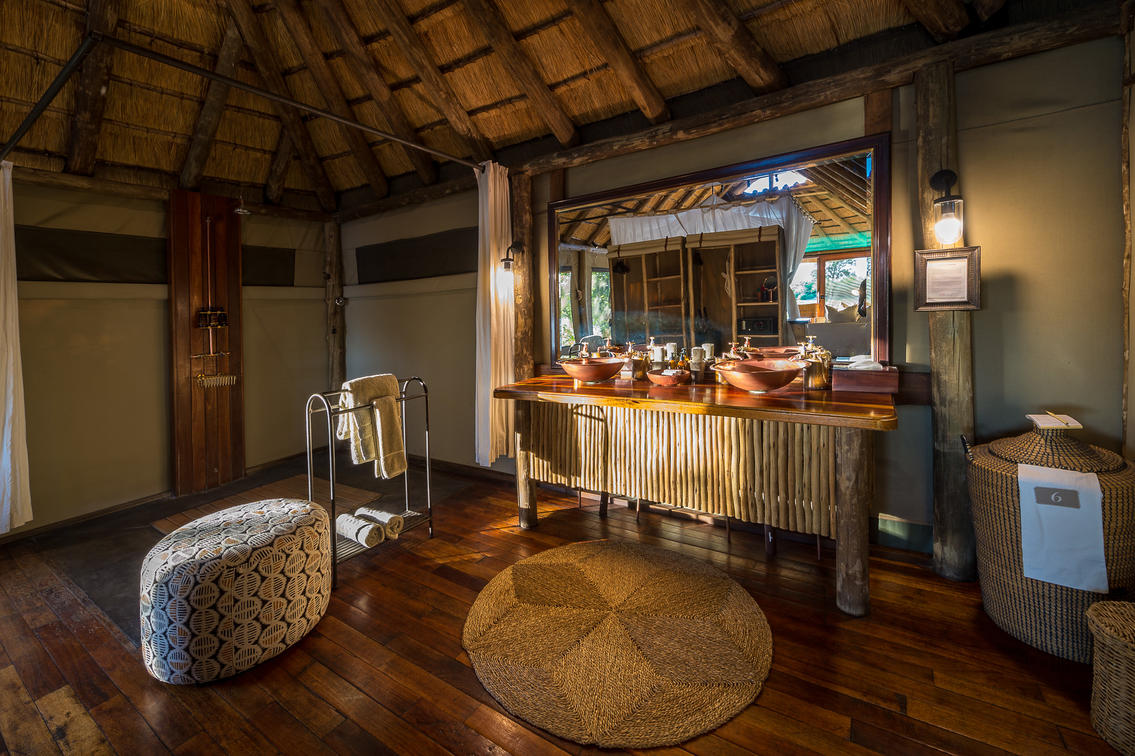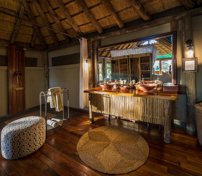 Double-vanity amenities are standard in the Savuti bathrooms