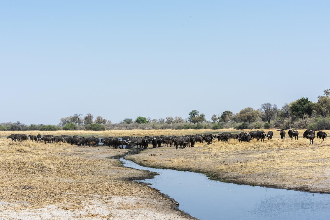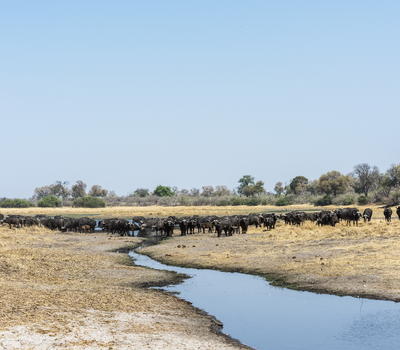 A huge herd of buffalo along at the Savuti Channel