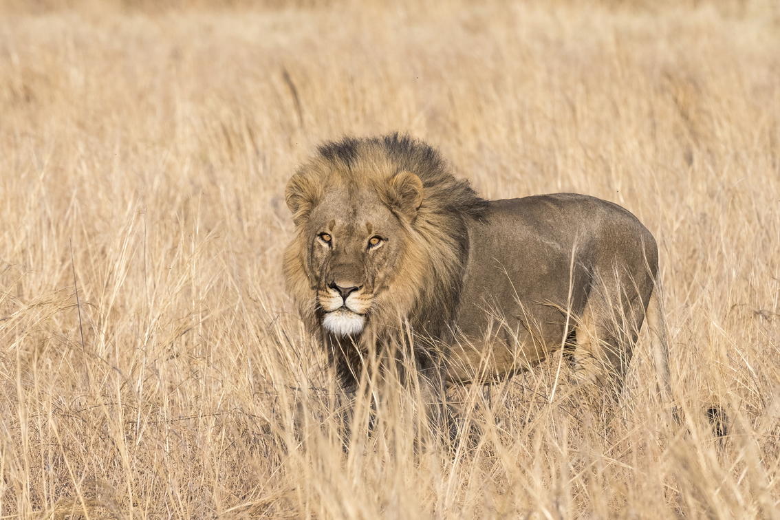 A big male lion on the hunt